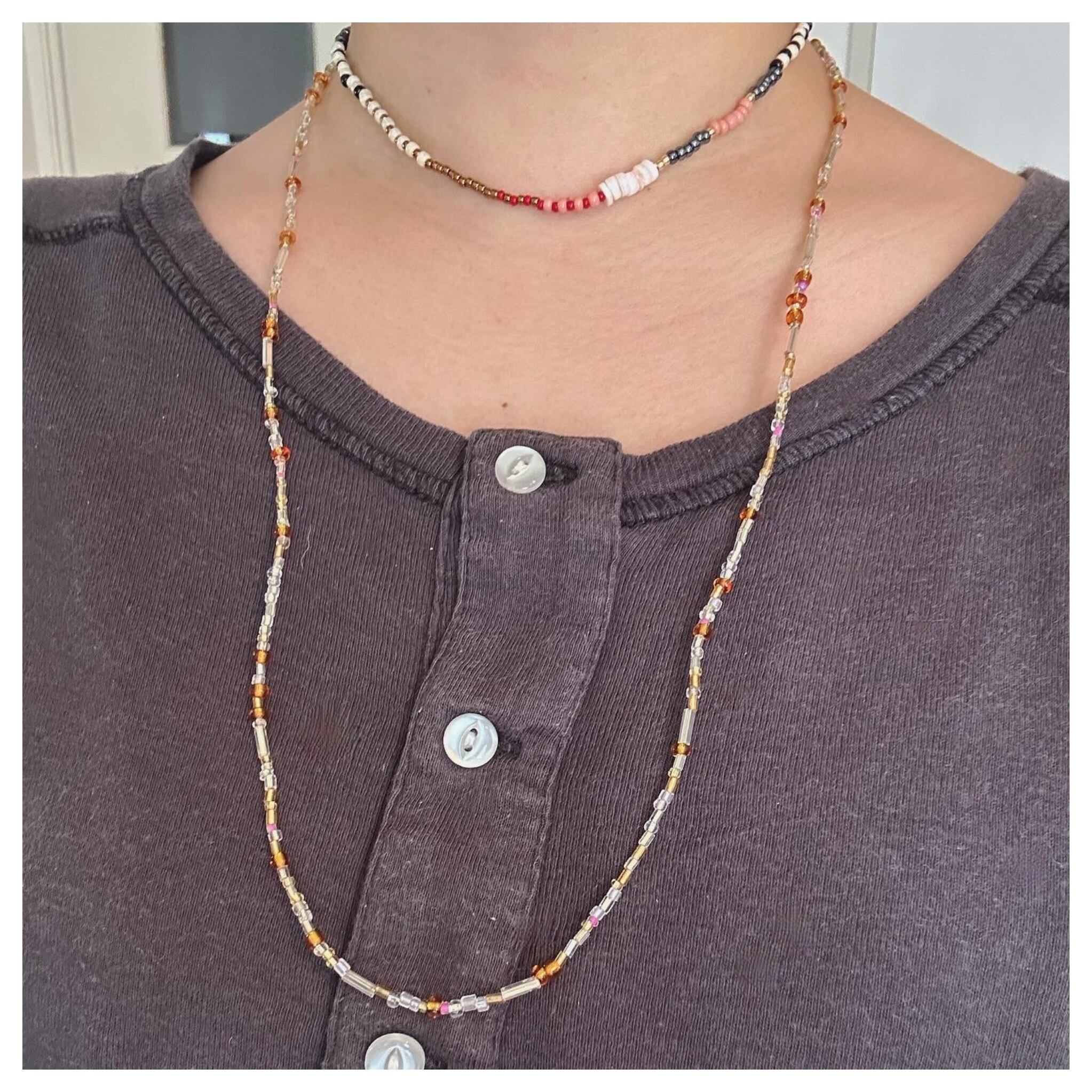 length 67.5cm . using all antique glass beads .