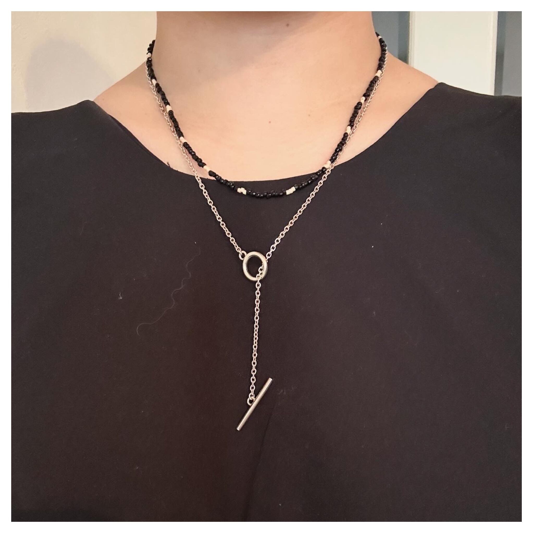black metallic beads necklace