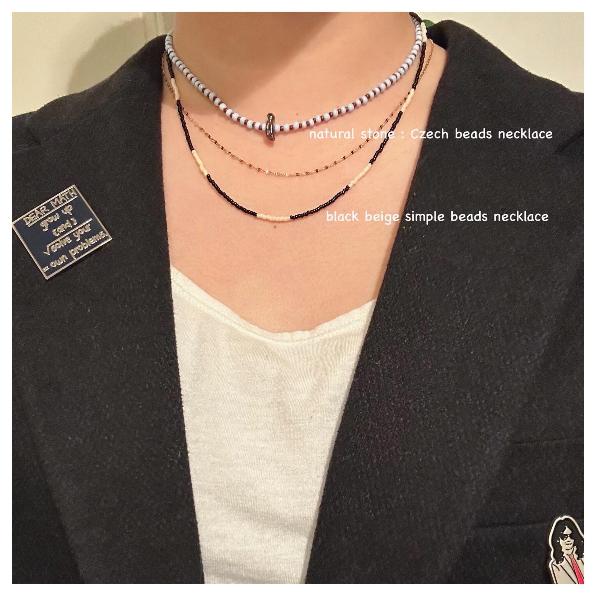 silver seed beads long necklace and black beige simple beads necklace !