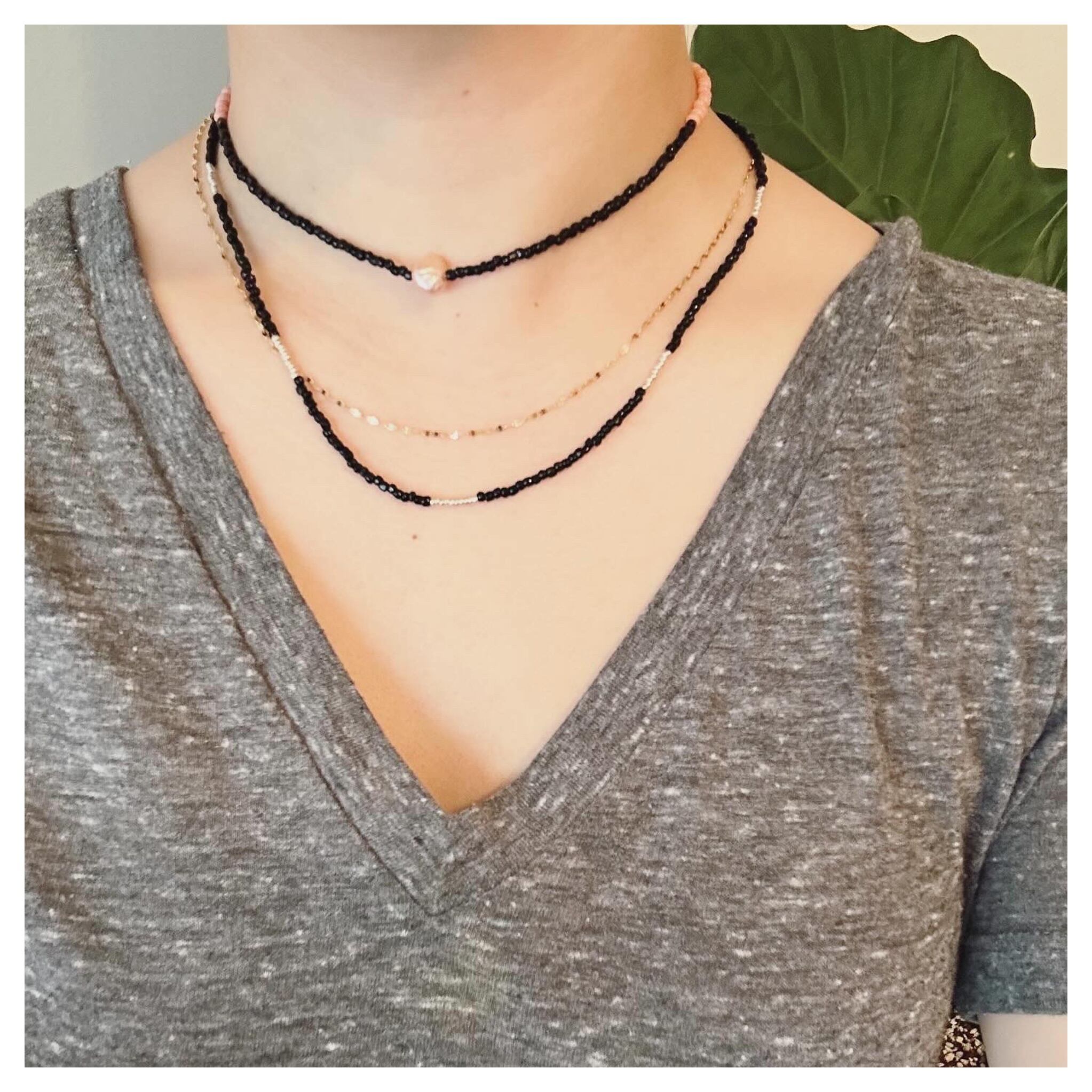 black metallic beads and silver seed beads necklace
