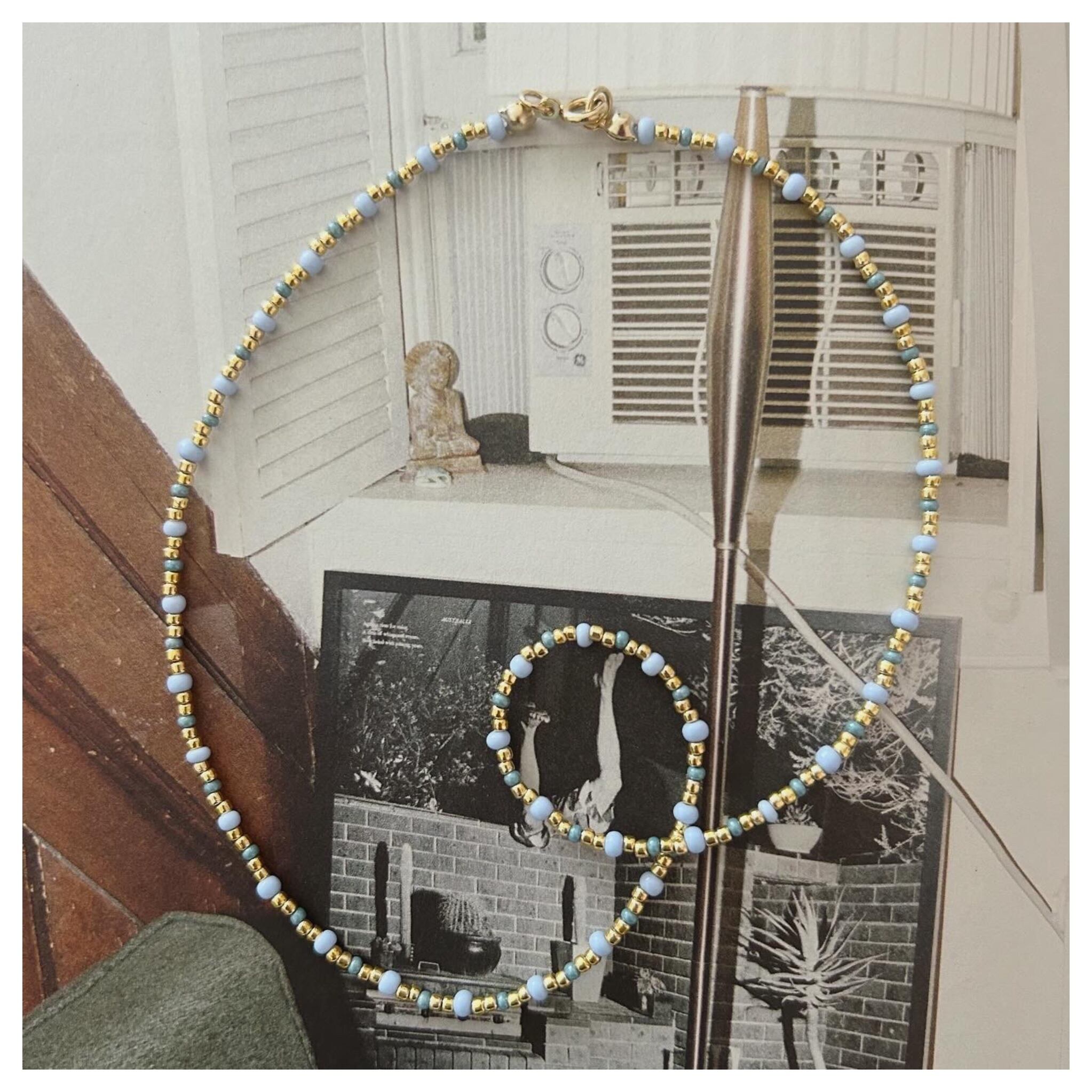 length 42cm . using antique seed beads .