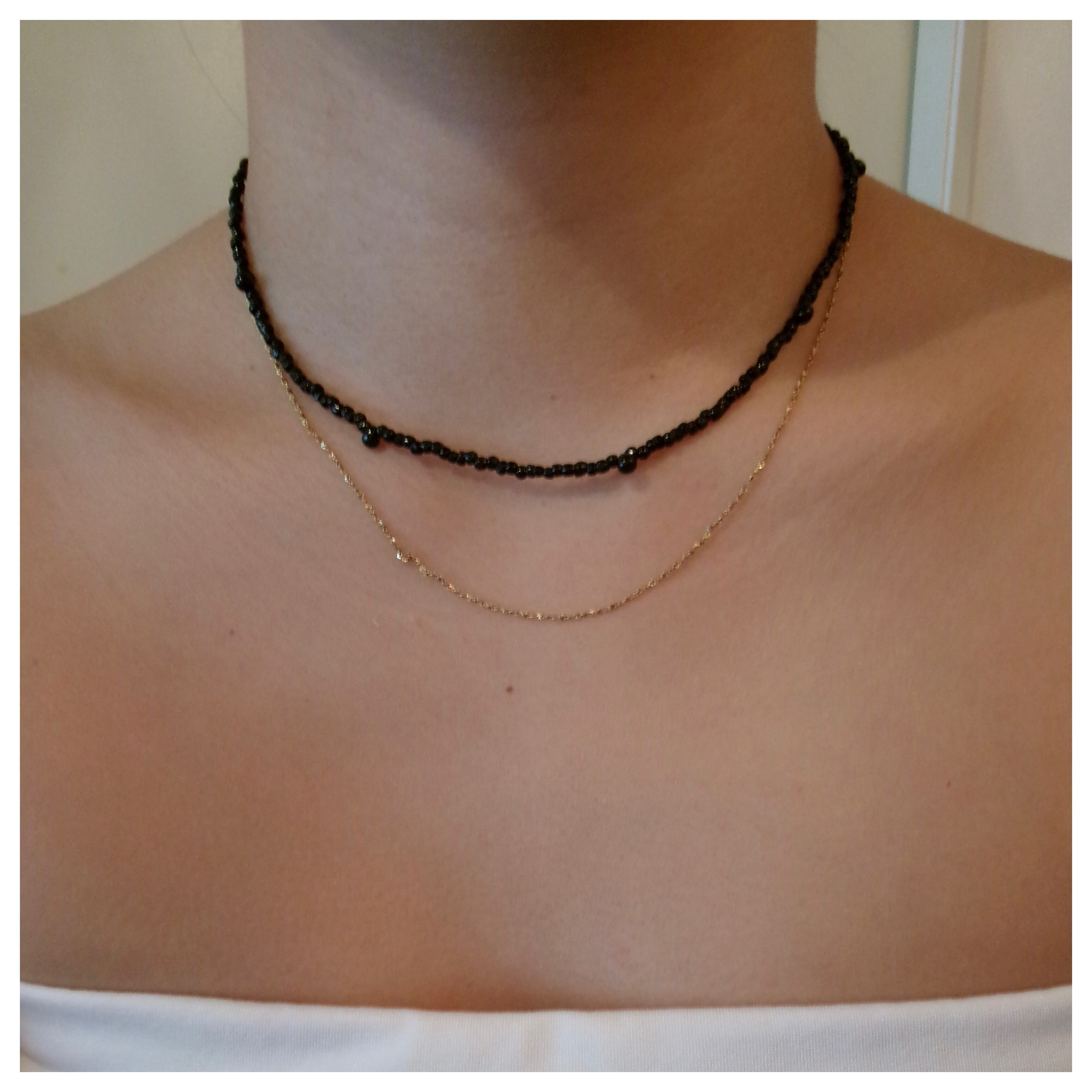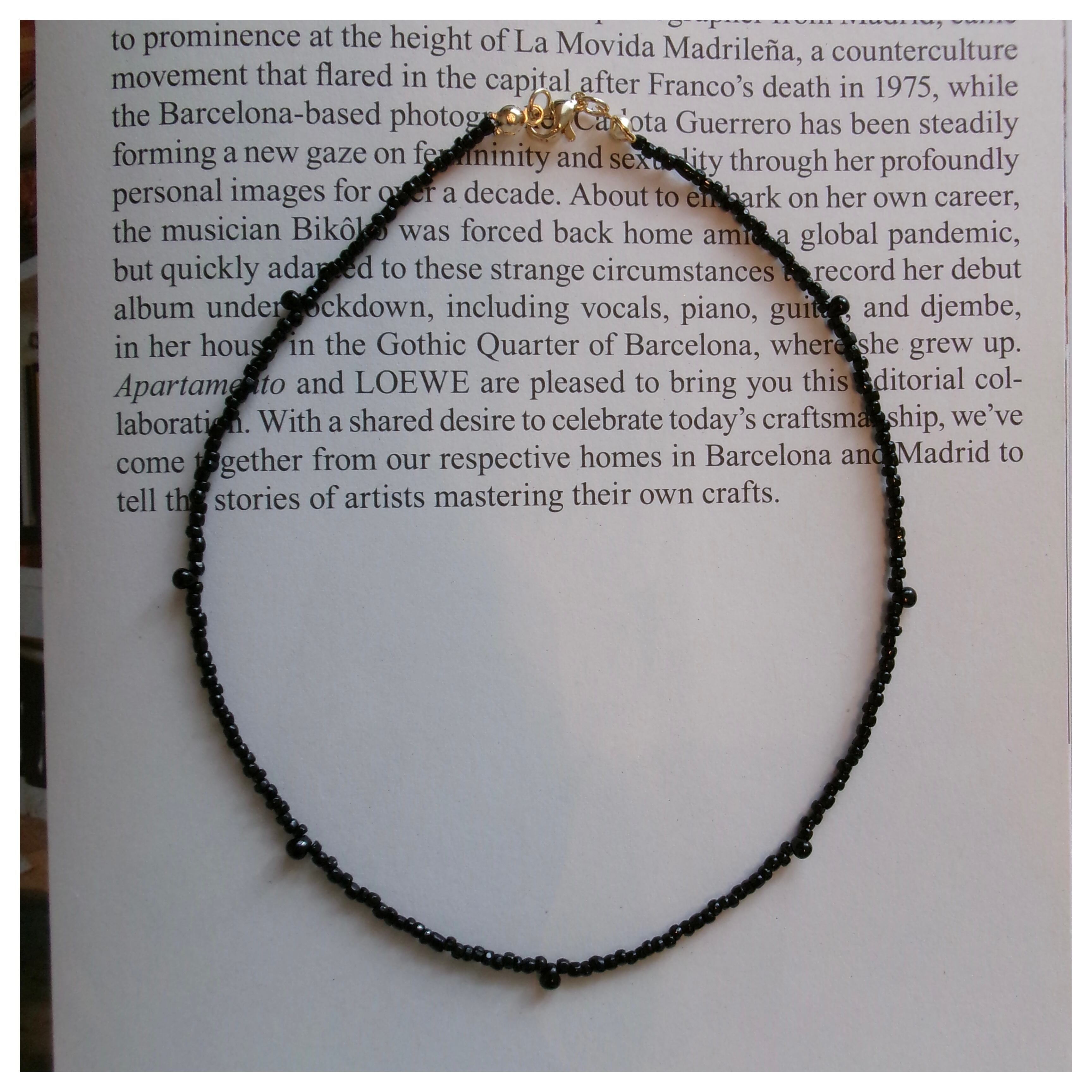 length 36.5 cm . using vintage metallic beads and drop beads .